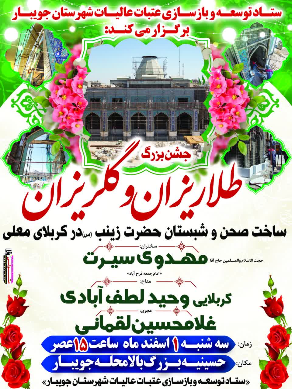 جویباریها با برگزاری جشن بزرگی با مشارکت مردمی در مرمت و بازسازی شبستان حضرت زینب سلاماللهعلیها شرکت می کنند